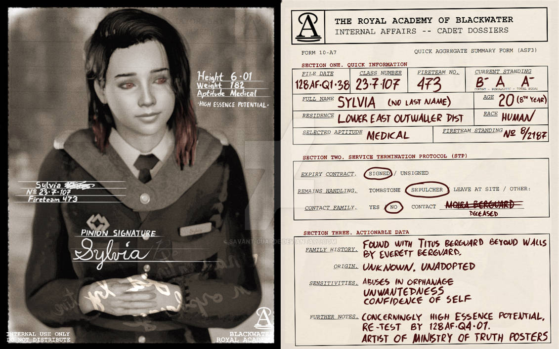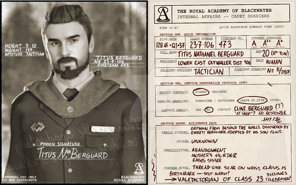 Long after the incident at Blackwater, the following files were among the documents recovered from the Royal Academy of Blackwater’s Internal Affairs division. Investigation into this fireteam’s firebrands is being processed by the Royal Capital to investigate the causes of the great Chosen Mask event.